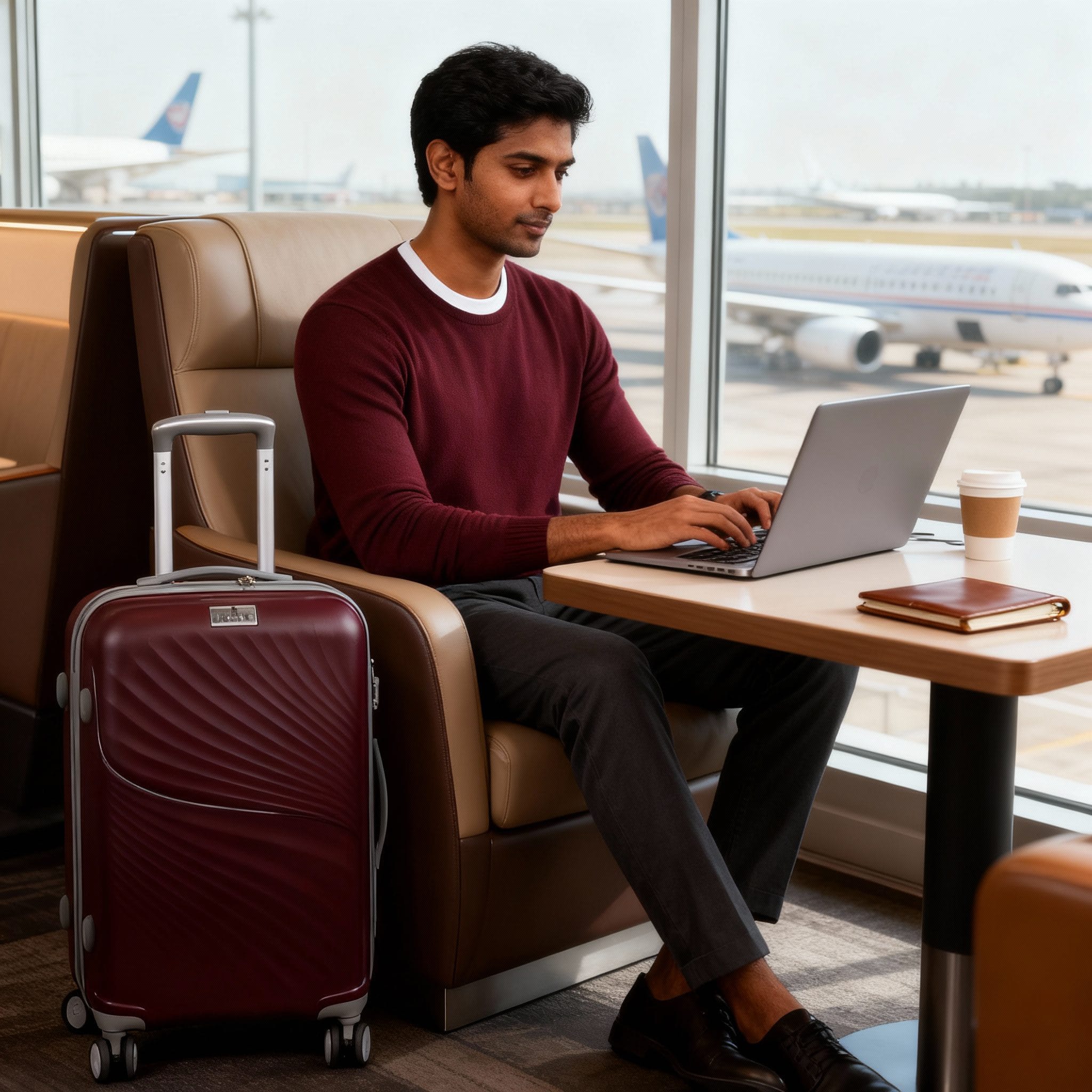 Dual-spinner 360° wheels for effortless control, Anti-theft zipper, TSA-approved lock, Garment-friendly interior with tie-down straps, Professional aesthetic for boardrooms and lounges
